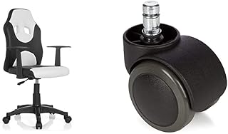 hjh OFFICE 670830 Kinderdrehstuhl Kid Racer AL Kunstleder Schwarz/Weiß Kinder-Schreibtischstuhl & 619006 5X Hartbodenrollen für Bürostuhl ROLO Stift 11 mm/Rolle 50 mm Drehstuhl Rollen für Hartböden