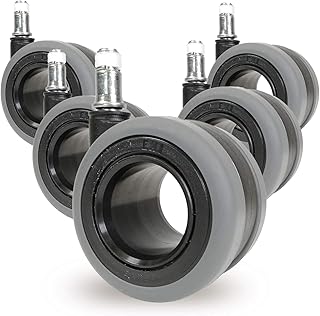 OfficeWorld Range Hartbodenrollen Ring Stuhlrollen 5er Set Ø 65mm - Ø 10mm x 32mm, 20mm oder 25mm Stiftlänge - Extrem Leise Rollend - Ungebremst - Sicherheits Doppelrollen