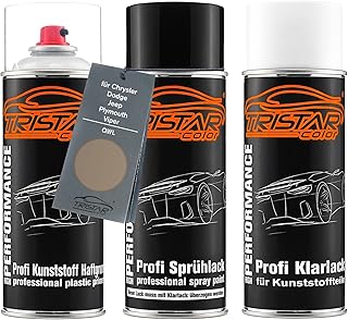 TRISTARcolor Autolack Spraydosen Set für Kunststoff Stoßstange für Chrysler/Dodge/Jeep/Plymouth/Viper QWL White Gold Metallic Haftgrund Basislack Klarlack mit Weichmacher Sprühdose
