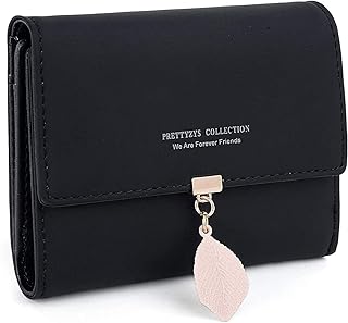 Geldbeutel Damen klein PU Leder Schwarz mit Münzfach Scheinfach und Kartenfächer | Geldbörse Damen klein PU Leder Schwarz viele Fächer | Portemonnaie Damen Frauen (Schwarz)
