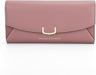 Geldbörse Damen Lange Kumano Portemonnaie Damen Groß Kapazität Leder Portmonee Damen mit Münzfach 9 kartenfächer, Schwarz/Blau/Grau/Rot/Braun/Pink
