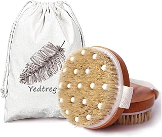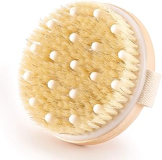 Badebürste, natürliche Borsten mit Massagegummi Noppen, Körperschrubber, Lymphdrainage-Massagegerät, perfekt zur Reduzierung von Cellulite-Toxinen, Peeling, trockenes Bürsten, 2 Stück MEHRWEG bei Amazon.de | Günstiger Preis | Kostenloser Versand ab 29€ für ausgewählte Artikel Sicherheitsinformation: Diese Bürste besteht aus natürlichen Wildschweinborsten, Kirschholz, Gummi (für den Griff) und Kunststoff (wobei die Borsten am Kopf der Bürste befestigt sind). Anwendung: Verwenden Sie diese Trockenbürste, um trockene oder abgestorbene Haut zu entfernen. Mit dieser Bürste wird Ihr Lymphsystem stimuliert. Es ist bekannt, dass es dabei hilft, das Auftreten von Cellulite zu verringern. Trockenes Bürsten hilft, Giftstoffe aus Ihrem Körper zu entfernen. Es kann