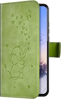 Uposao Kompatibel mit Samsung Galaxy Note 10 Hülle Leder Klapphülle Retro Elefant Liebe Muster Flip Schutzhülle Handyhülle Brieftasche Wallet Bookstyle Case Tasche Magnet Kartenfach,Grün