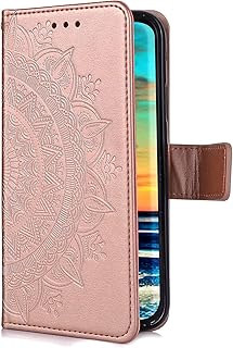 Uposao Kompatibel mit Samsung Galaxy A21S Hülle Leder Schutzhülle Brieftasche Handyhülle Mandala Blumen Lederhülle Klapphülle Flip Case Bookstyle Wallet Tasche Magnet Kartenfächer,Rose Gold