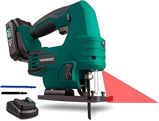 VONROC Akku-Stichsäge | Pendelhubstichsäge VPower 20V, 2.0Ah – Komplettset mit Akku, Schnellladegerät, Sägeblättern, Parallelführung und Aufbewahrungstasche