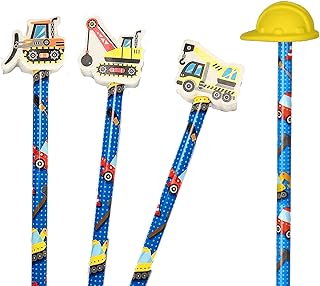 Neu: 4 Bleistifte * Baustelle * mit Radiergummi für Schule und Kindergarten | Stift Zeichnen Schreiben Kind Bauarbeiter Helm Bagger Radlader