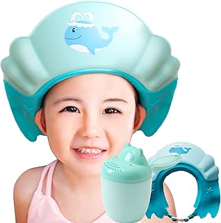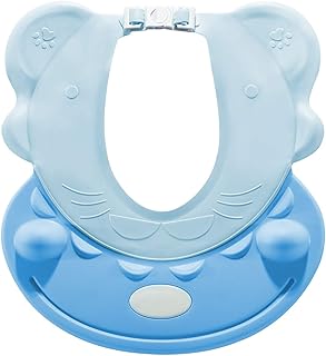 Shampoo Schutz für Kinder, Haare waschen ohne Tränen, für 0-9 Jahre, mit Clip-Verschluss, Größen-verstellbar, wasserdicht, Augenschutz und Ohrenschutz, Haarwaschhilfe, Kinder Duschkappe, in blau