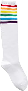 Battnot Damen Socken Regenbogen Fußball Socken Knielanger Oberschenkel Hohe Socken Streifen Sportsocken Sportliche Socken Weiß für Herren Damen