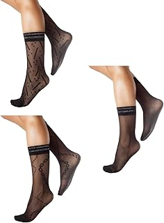 PACK 3 PAAR Feine Socken, Damen Socken, Lurex Socken, Damen Strümpfe, Netz Socken, Netz Kniestrümpfe | Schwarz | Einheitsgröße | Made in Italy