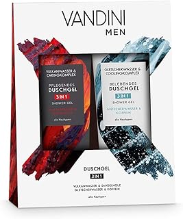 VANDINI Duschgel Set für Männer - Pflegeduschgel mit Vulkanwasser & Sandelholz - Duschgel mit Gletscherwasser & Koffein - Herren Duschgel für alle Hauttypen geeignet (2x 200 ml)