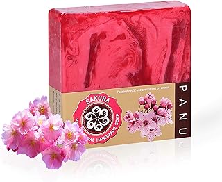 Panu Sakura Seife - Vegane Feste Seife für alle Hauttypen - Natürliches Handseife Stück - Festes Duschgel für Körper, Haut und Haar - Handgemachte Duftseife Tierversuchsfrei