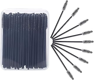 MSQ Mascara Pinsel, 100 Stück Wimpern Bürste mit Box, Einweg Mascara bürstchen, Wimpernbürstchen für Schminken Schwarz, Mascara Eyelash Brushes