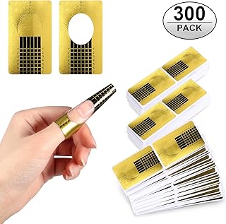 Amacoam Nagelschablonen Verlängerung Schablonen Nagelverlängerung Gel Nägel Schablonen 300 Stück Modellier Schablone Selbstklebend für Gel Nägel & Nagel Verlängerung Square Goldschablonen