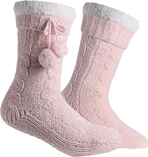 Damen Kuschelsocken Haussocken Bettscoken Hüttensocken Wintersocken Chenille Socken Warme Dicke Socken mit Antirutschsohle für Damen und Herren