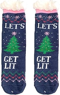 Damen Hüttensocken Haussocken Kuschelsocken Stoppersocken Wintersocken Warme Dicke Socken mit ABS Antirutschsohle Innenfrottee Lustiges Tiermuster Weihnachtssocken 1 Paar