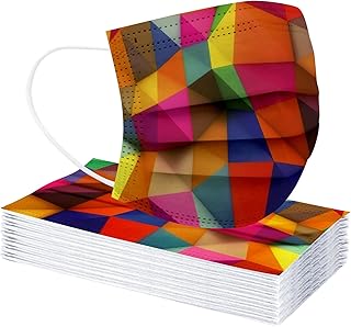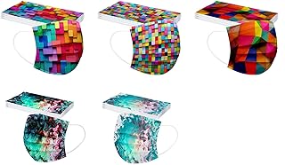 Generic 50 Stück Mundschutz Erwachsene Einweg 3-lagig mit Motiv Bunt Mund-Nasen-Schutz Atmungsaktiv Mund-Tuch Bandana Halstuch Schals für Männer Frauen
