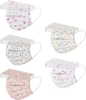 Generic 50 Stück Mundschutz Erwachsene Einweg 3-lagig mit Blume Motiv Bunt Mund und Nasenschutz Tücher Atmungsaktiv Mund-Tuch Bandana Halstuch Schals für Männer Frauen (J-50PC Maske)