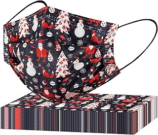 50 Stück Weihnachtsmaske Mundschutz Erwachsene Einweg 3-lagig MNS Mund-Tuch mit Motiv Bunt Mund und Nasenschutz Weihnachten Atmungsaktiv Mund-Tuch Halstuch Tücher Bandana Schals für Männer Frauen